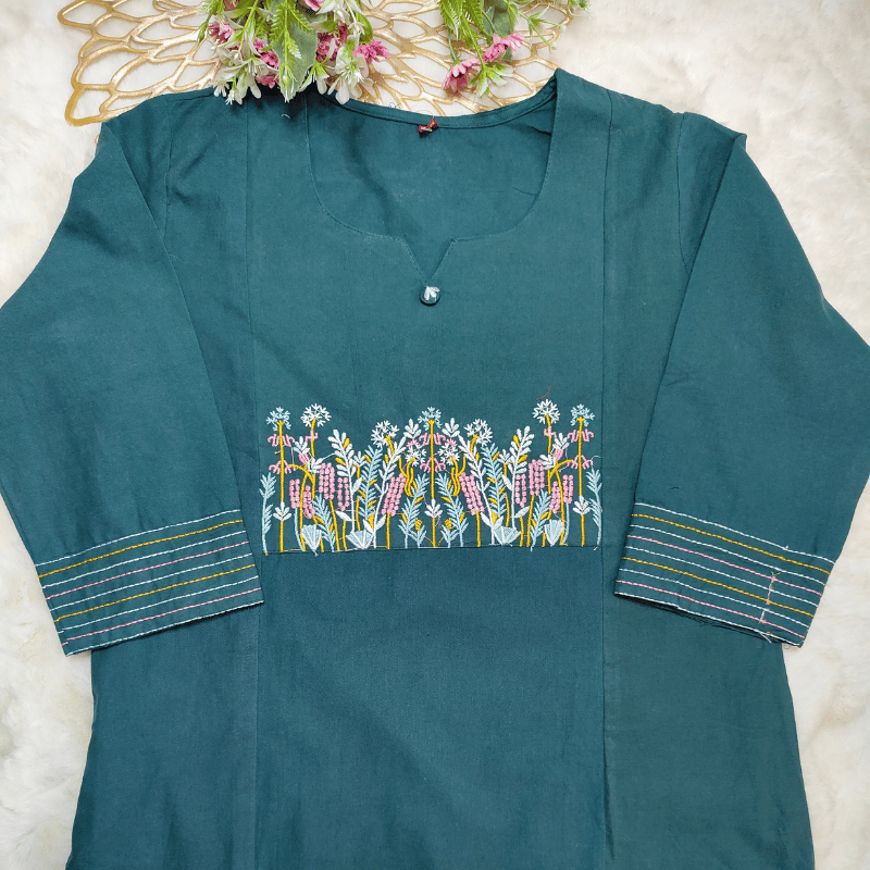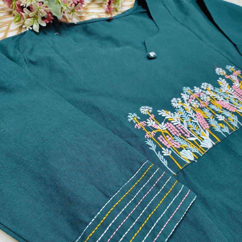 • Sleeve embroidery adds dimension to the arms, preventing the body from looking too straight.
