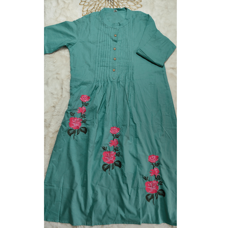 Sleeve: 3/4th sleeve with floral embroidery to enhance the sleeve portions.