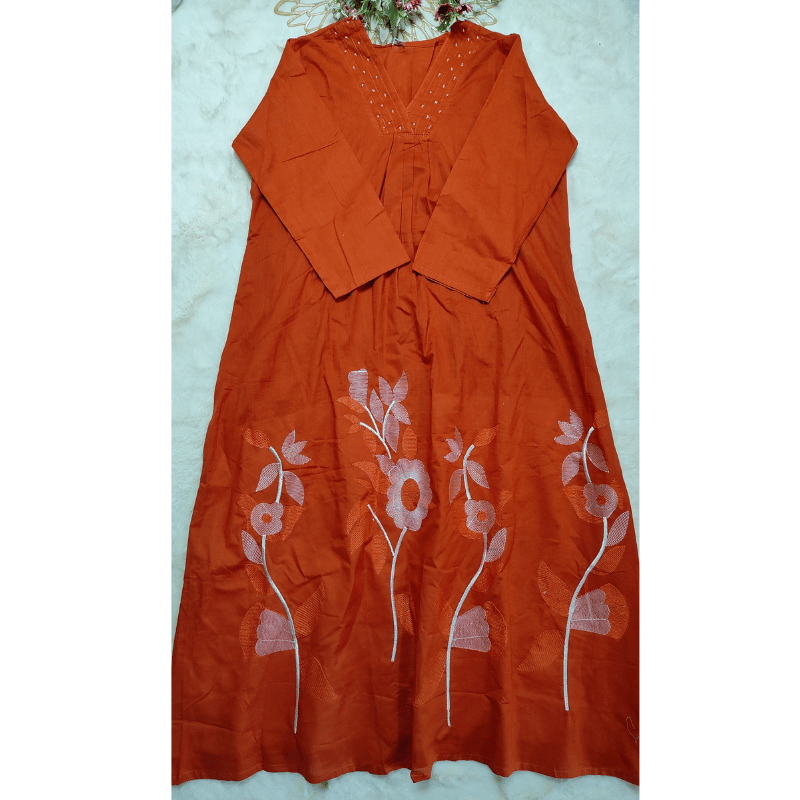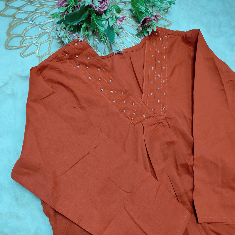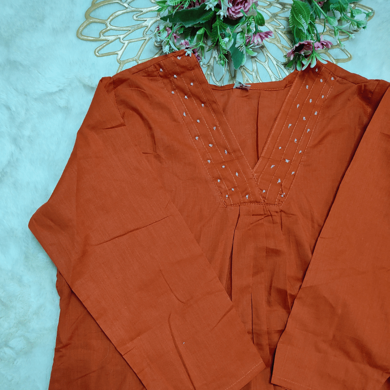 The straight fall of the kurti doesn’t hide curves but skims them softly, making it flattering without being too tight.